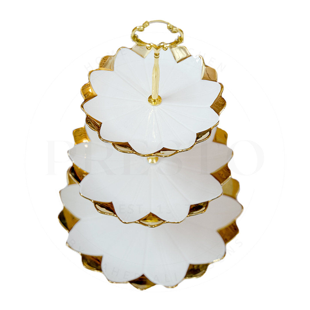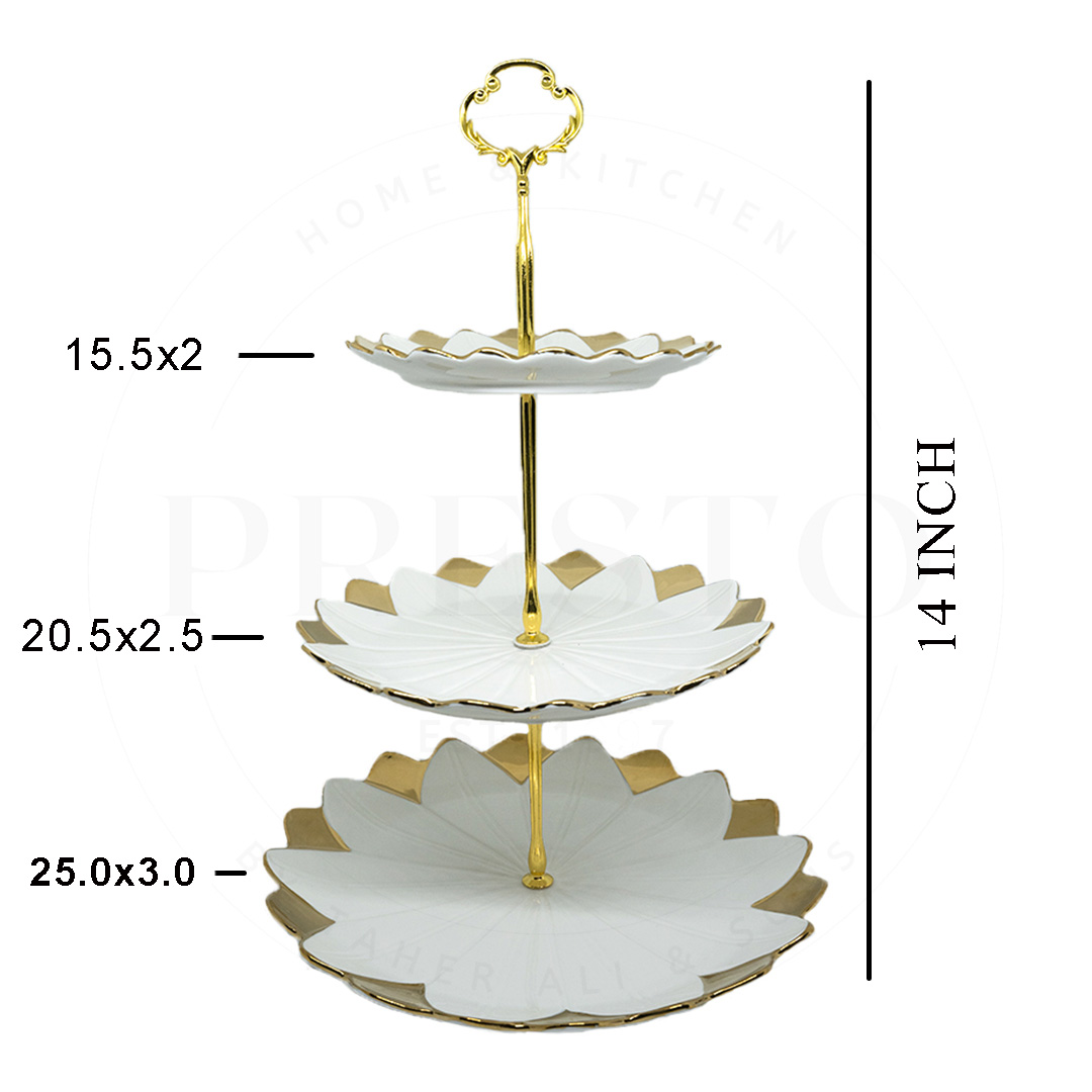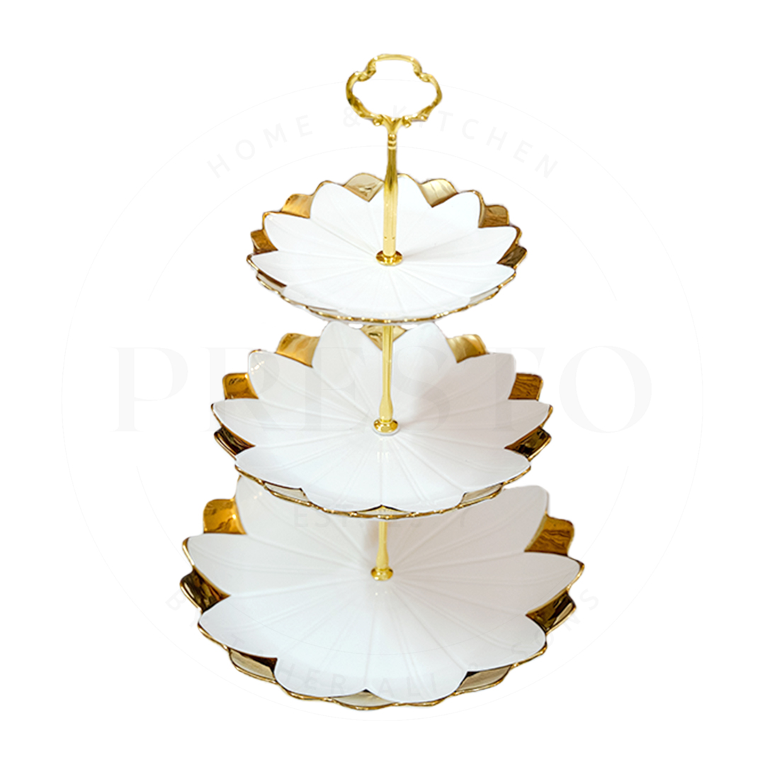 Elevate your dessert presentation with our 3-Tier Ceramic Cake and Pastry Stand. Designed with a charming round floral pattern, this stand is perfect for serving cakes, pastries, and assorted treats at gatherings or special events. The sturdy ceramic material ensures durability, while the three-tier design offers ample space for showcasing your delicious creations.